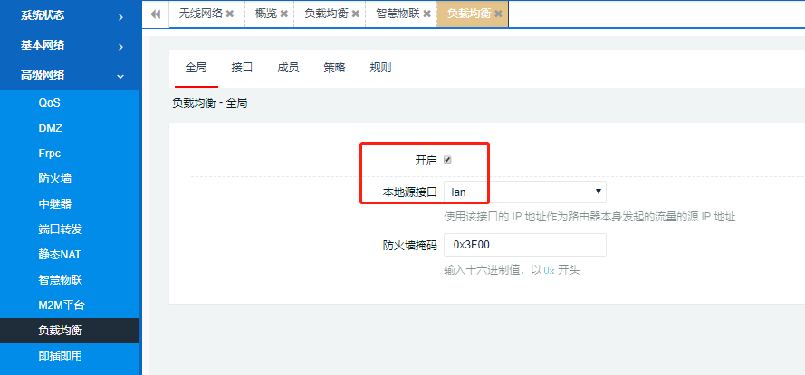 负载均衡功能各默认策略使用说明:wan_only: 指仅使用wan有线网络(无论3G/4G卡是否正常都忽略流量);